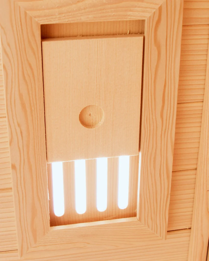 The salt cabin itself consists of a large, Canadian white cedar cabinet with a glass door and is available in two sizes: two person and four person. This cabinet creates an enclosed space, or room, isolating your salt room from the room it resides in from the salt mist, while maximizing your exposure to the dry salt mist’s therapeutic benefits.